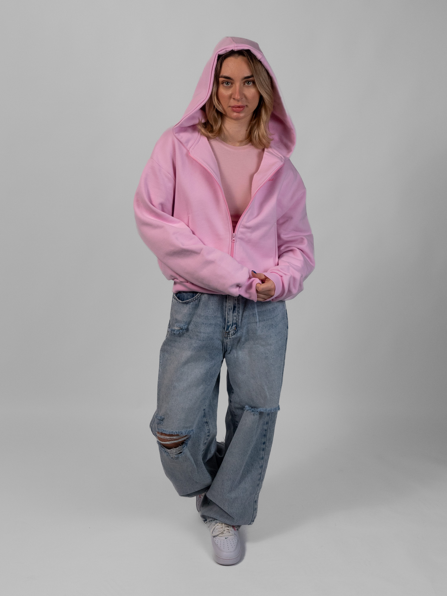 Зип-худи Pink Code - специальная версия худи для девушек. Укороченная посадка, перереботанный широкий капюшон, который идеально подчеркивает образ, молния в цвет, минималистичный принт-лого, кроп-посадка. Он изготовлен из плотного футера 470 г (100% хлопок), что позволит сочетать его в разных образах.